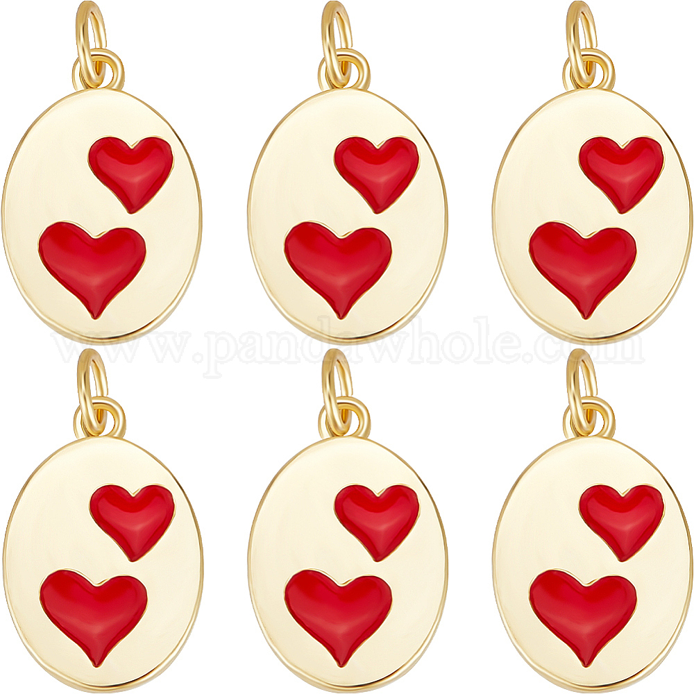 Настоящие 18 k позолоченные латунные подвески, с эмалью и кольцами для прыжков, долговечный, овальные с сердцем