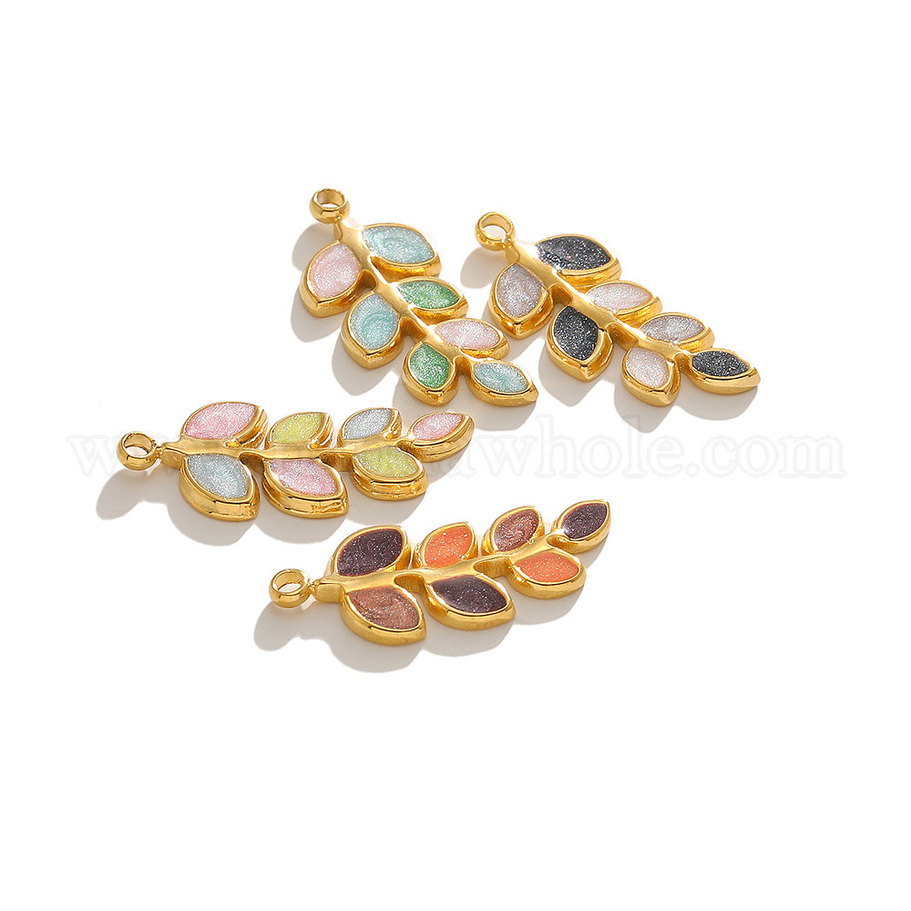 Шкентели нержавеющей стали, с эмалью, золотые, лиственные ветки прелести