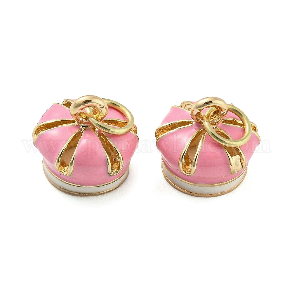 • Pink Корона стойка покрытие латунь эмаль подвески, с целью перехода в кольце, долговечный, без кадмия и без свинца, реальный 18 k позолоченный, розовые, 9.5x10x9.5 мм, отверстие : 3.8 мм