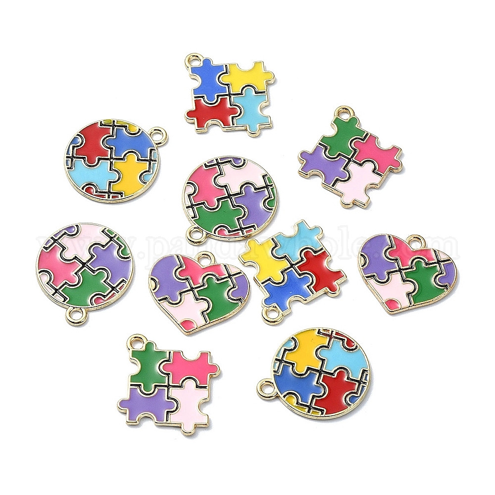 10 шт 5 стили подвески из сплава эмали, шарм-головоломка для аутистов, сердце и плоское, круглое и ромб