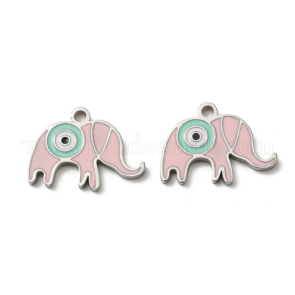 • Pink 304 нержавеющей стальной эмали подвески, слон с оберегами от сглаза, цвет нержавеющей стали, розовые, 11.5x16x1.5 мм, отверстие : 1.5 мм