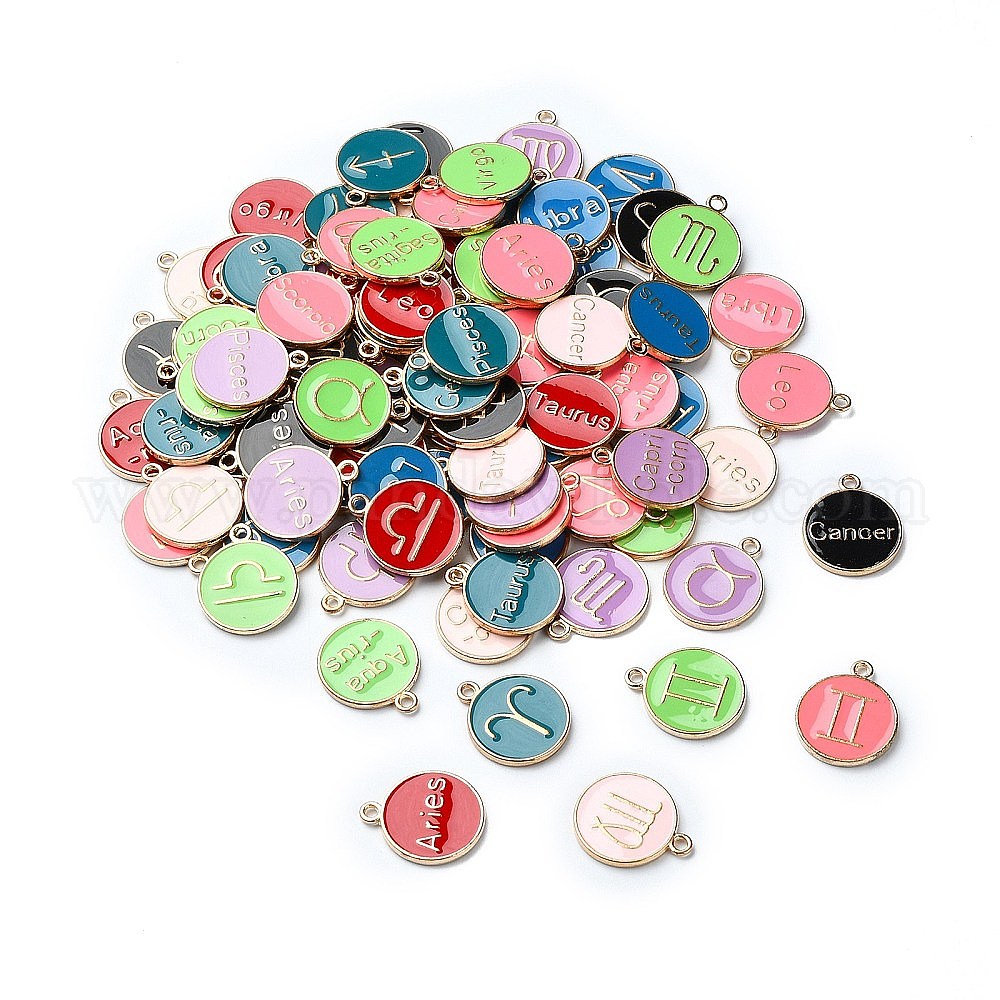(распродажа с дефектом)подвески из сплава эмали, без кадмия и без свинца, плоский круглый со случайным созвездием