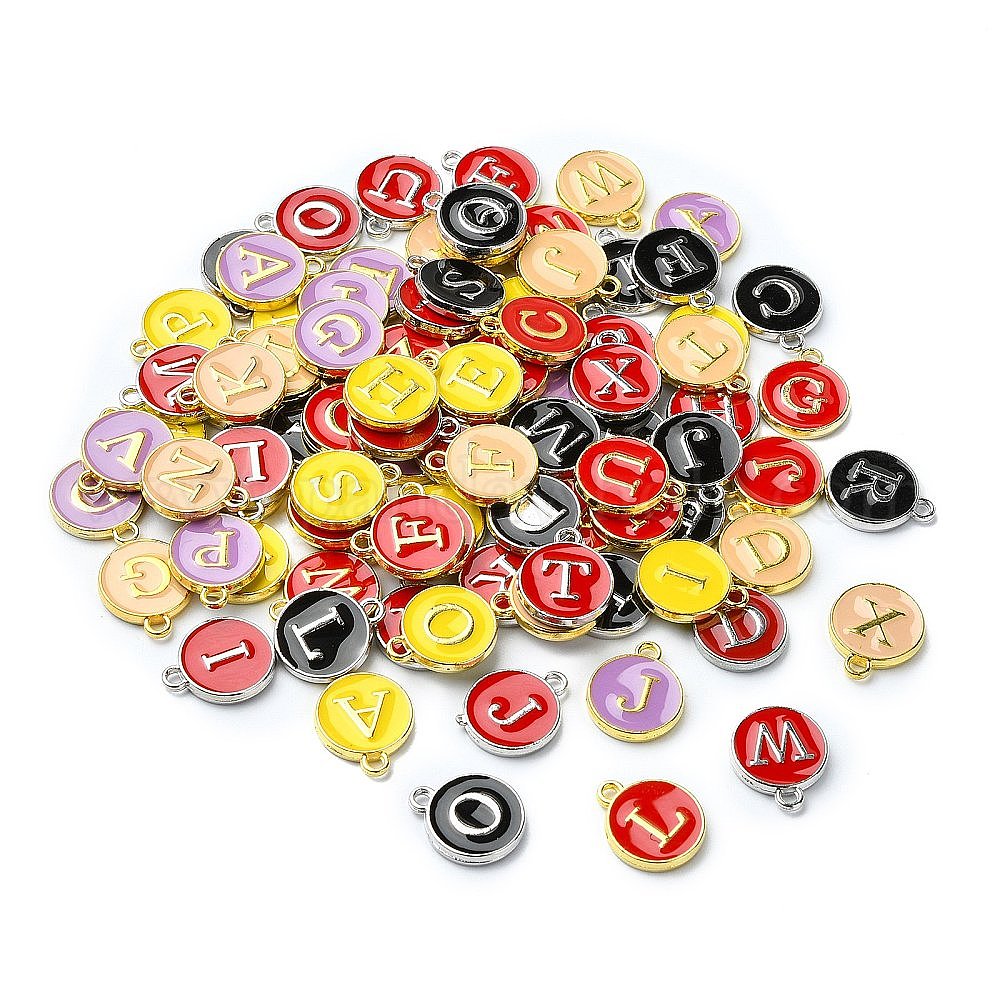 (распродажа с дефектом) подвески из сплава эмали с платиновым и позолоченным покрытием, без кадмия и без свинца, плоский круглый со случайным письмом