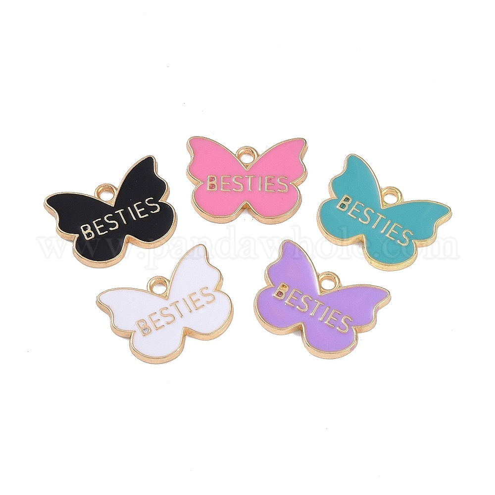 Подвески из эмали и сплава, без кадмия и без свинца, золотые, Бабочка со словом Besties Charm