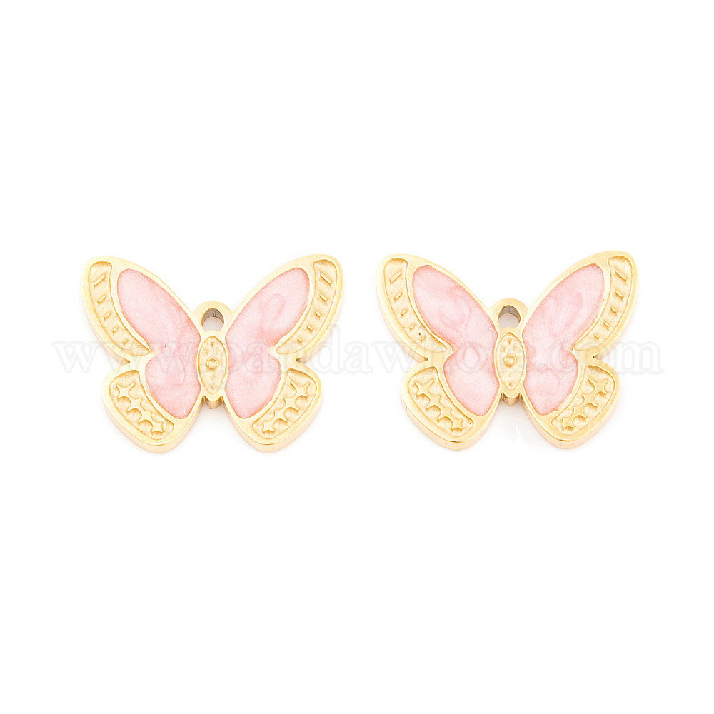 Ионное покрытие (ip) 304 брелоки из нержавеющей стали, с эмалью, реальный 18 k позолоченный, очарование бабочки