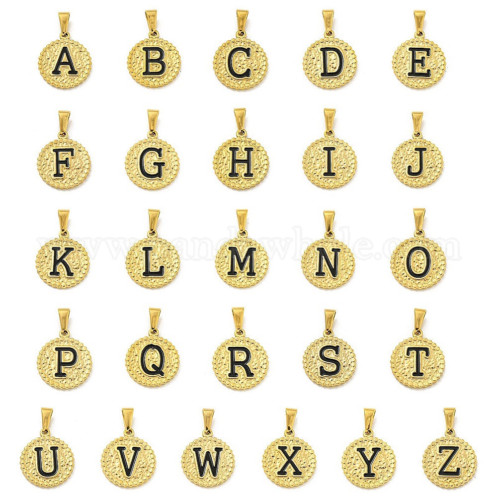 Ионное покрытие (ip) 304 подвески из нержавеющей стали с эмалью, золотые, плоский круглый с подвеской в виде буквы