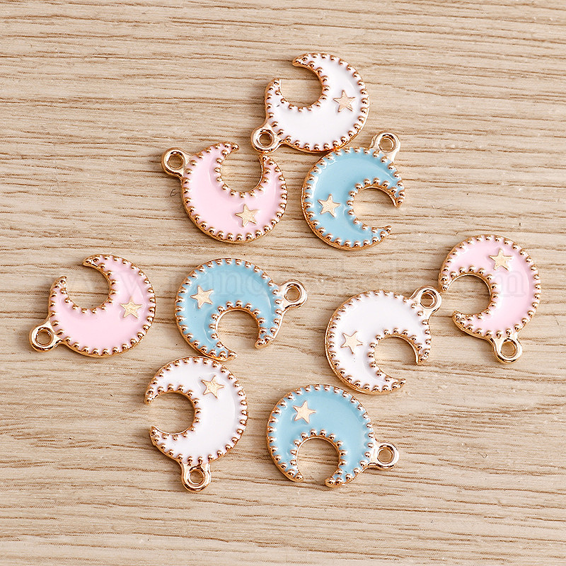 Подвески из эмали и сплава, золотой свет, луна со звездным шармом