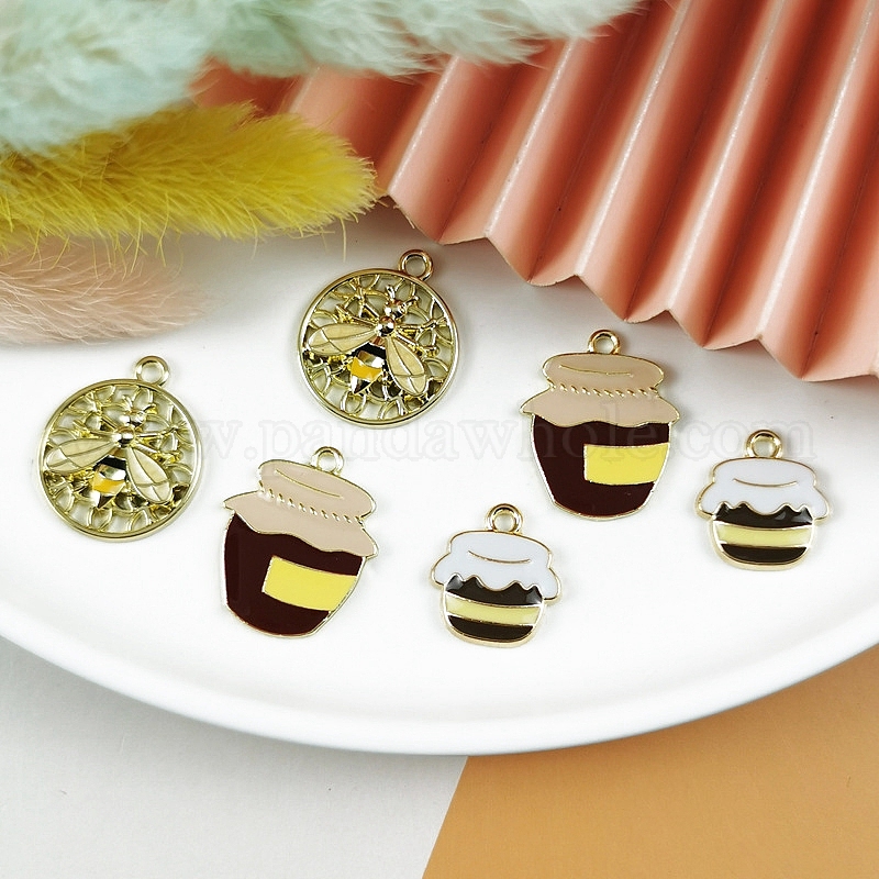 Подвески из эмали и сплава, золотые, подвеска в виде пчелы и меда (02TCPR)