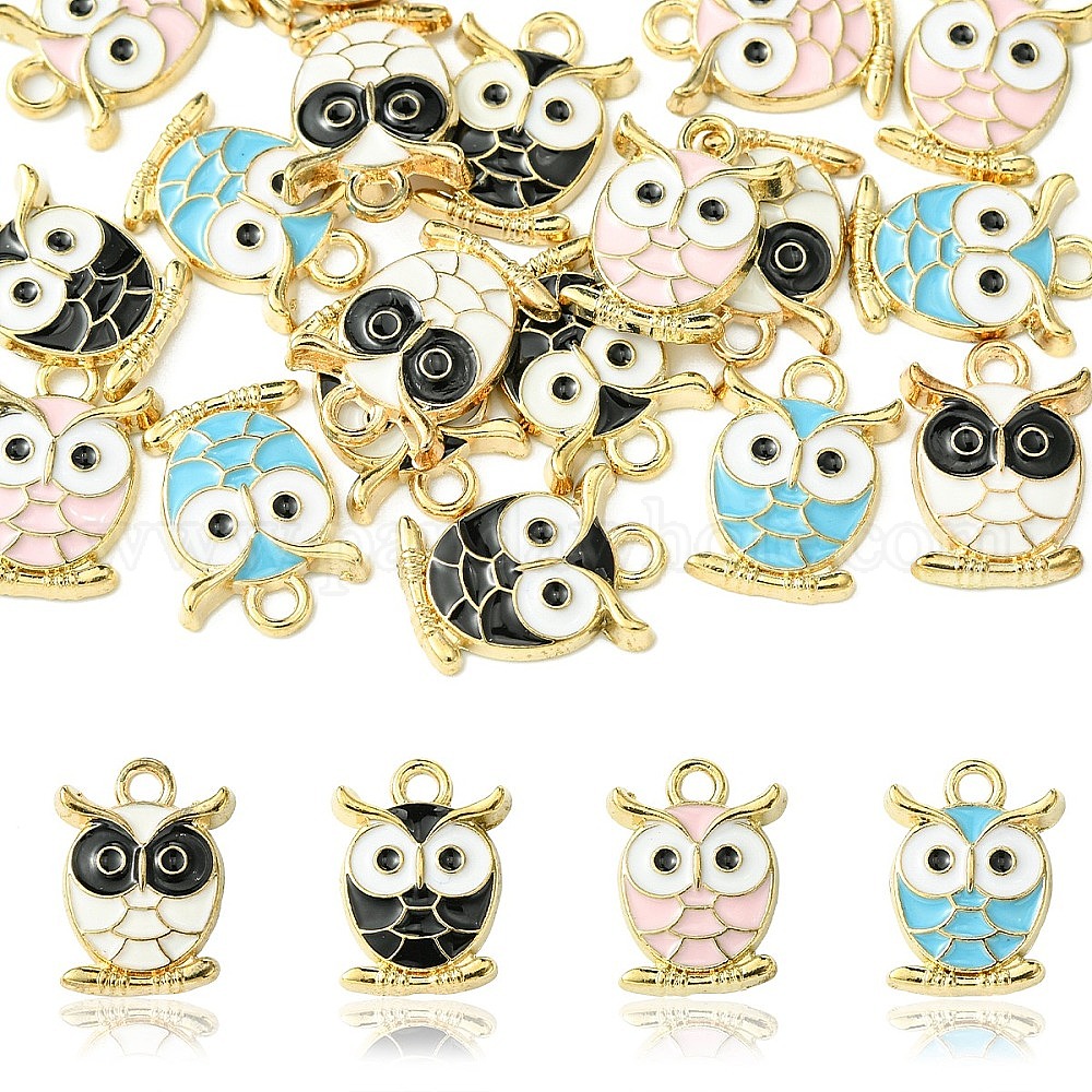 20 шт 4 цвета сплава эмалевые подвески, очарование совы, золотые