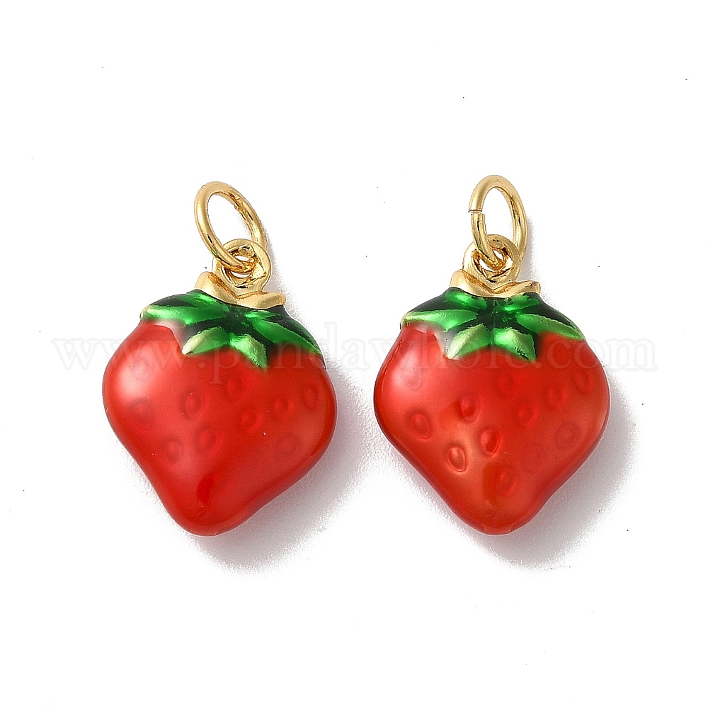 Подвески из латуни с эмалью в стойку, с целью перехода в кольце, реальный 18 k позолоченный, клубничное очарование, без кадмия и без свинца, долговечный