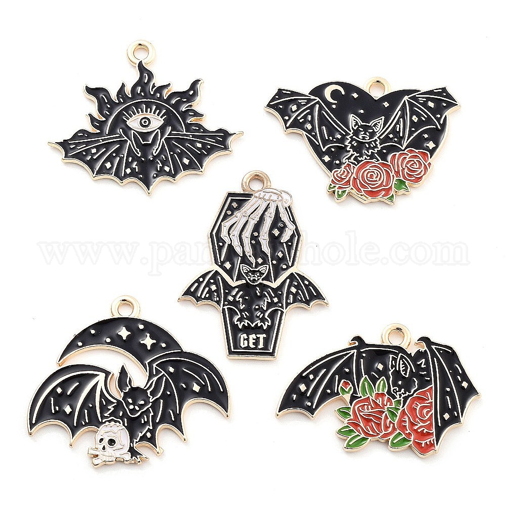 Подвески из сплава хэллоуина с эмалью, золотой свет, очарование летучей мыши (02W6QT)