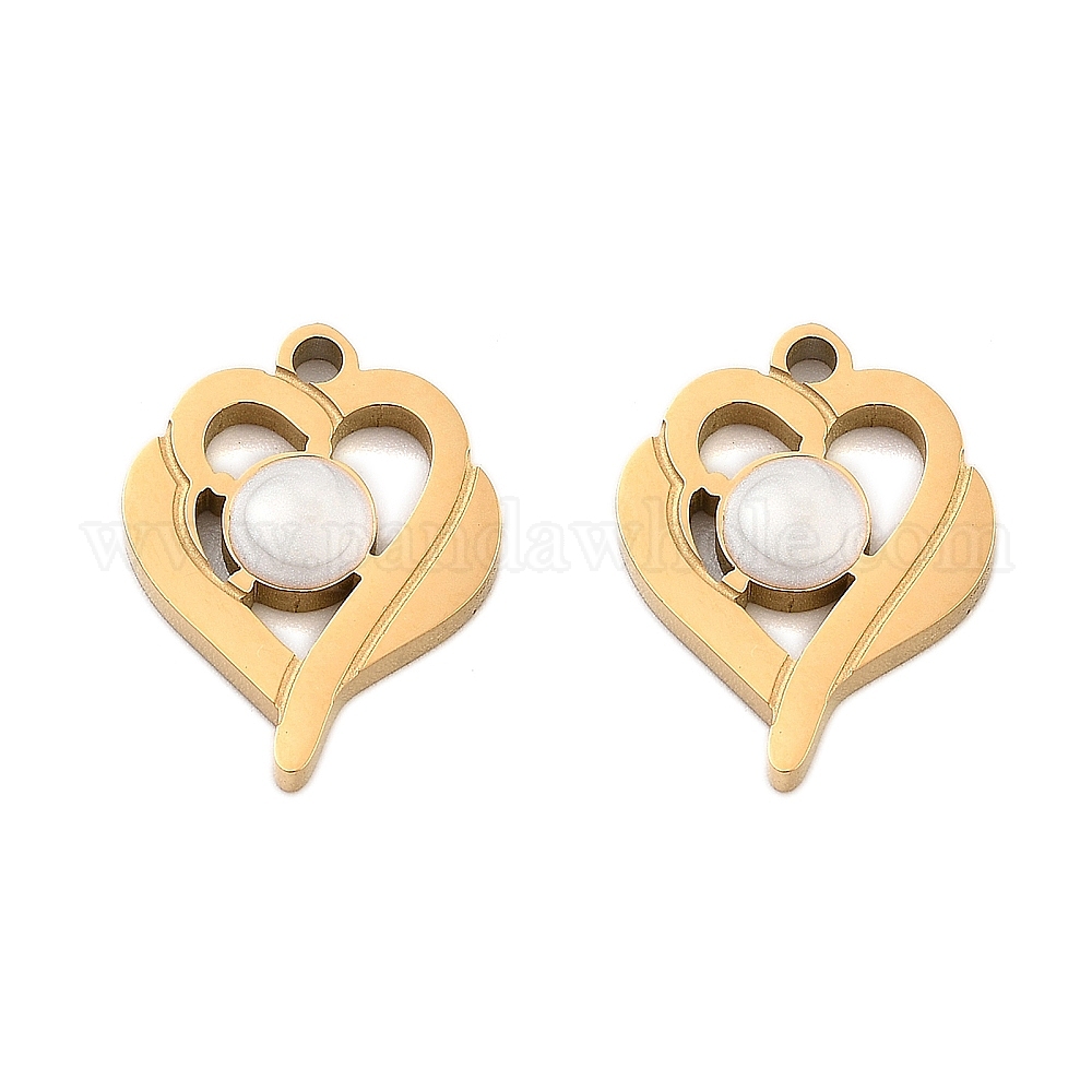 • Золотой Ионное покрытие (ip) 304 подвески из нержавеющей стали с эмалью, шарма сердца, золотые, 16x12.5x2 мм, отверстие : 1.5 мм