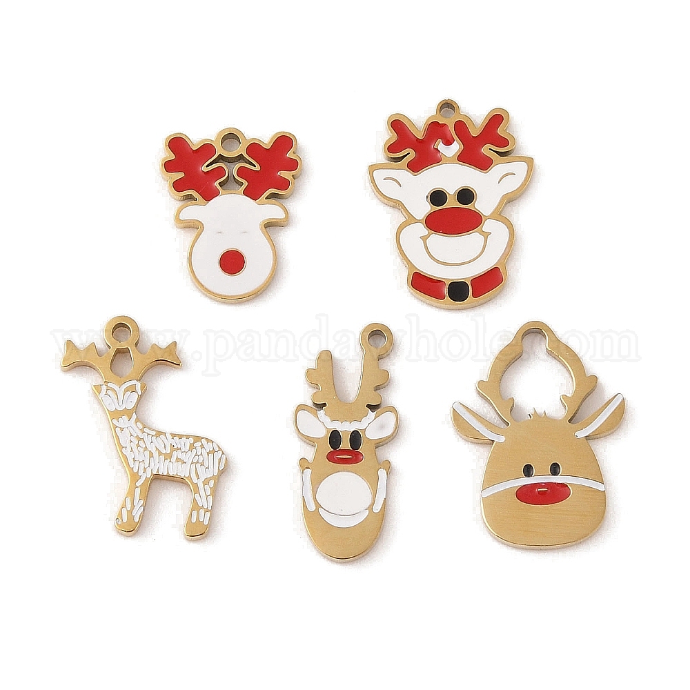 Рождественская тема ионного покрытия (IP) 304 подвески из эмали из нержавеющей стали, золотые, олень очарование