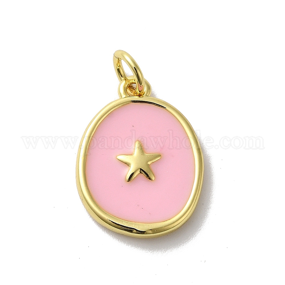 Латунь эмаль подвески, с целью перехода в кольце, без свинца и без кадмия, долговечный, овал со звездой, реальный 18 k позолоченный
