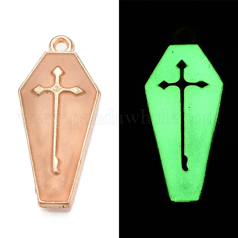 Подвески из эмали и светящегося сплава на тему хэллоуина, светится в темноте, гроб с крестиком