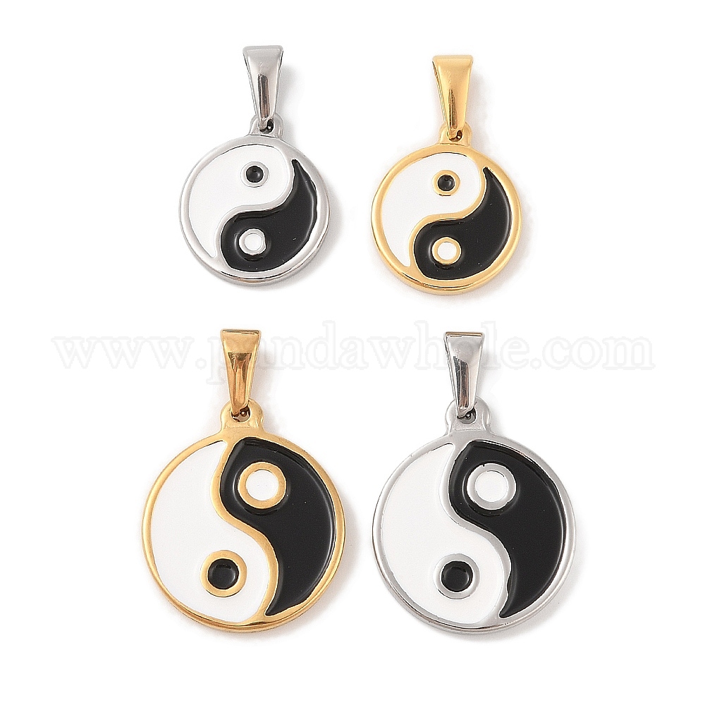 304 подвески из нержавеющей стали, с эмалью, плоский круглый с подвеской Инь-Ян