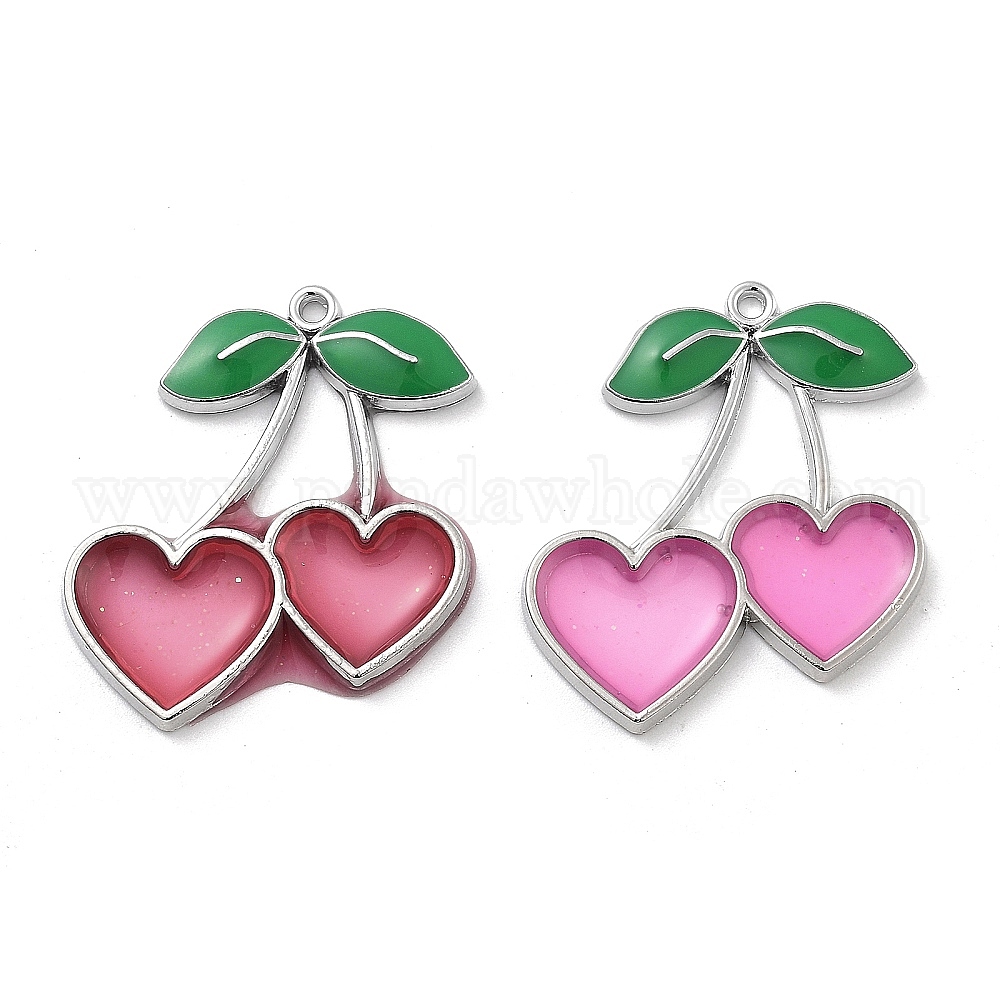 Подвески из эмали и сплава, сердечко вишневое очарование, платина