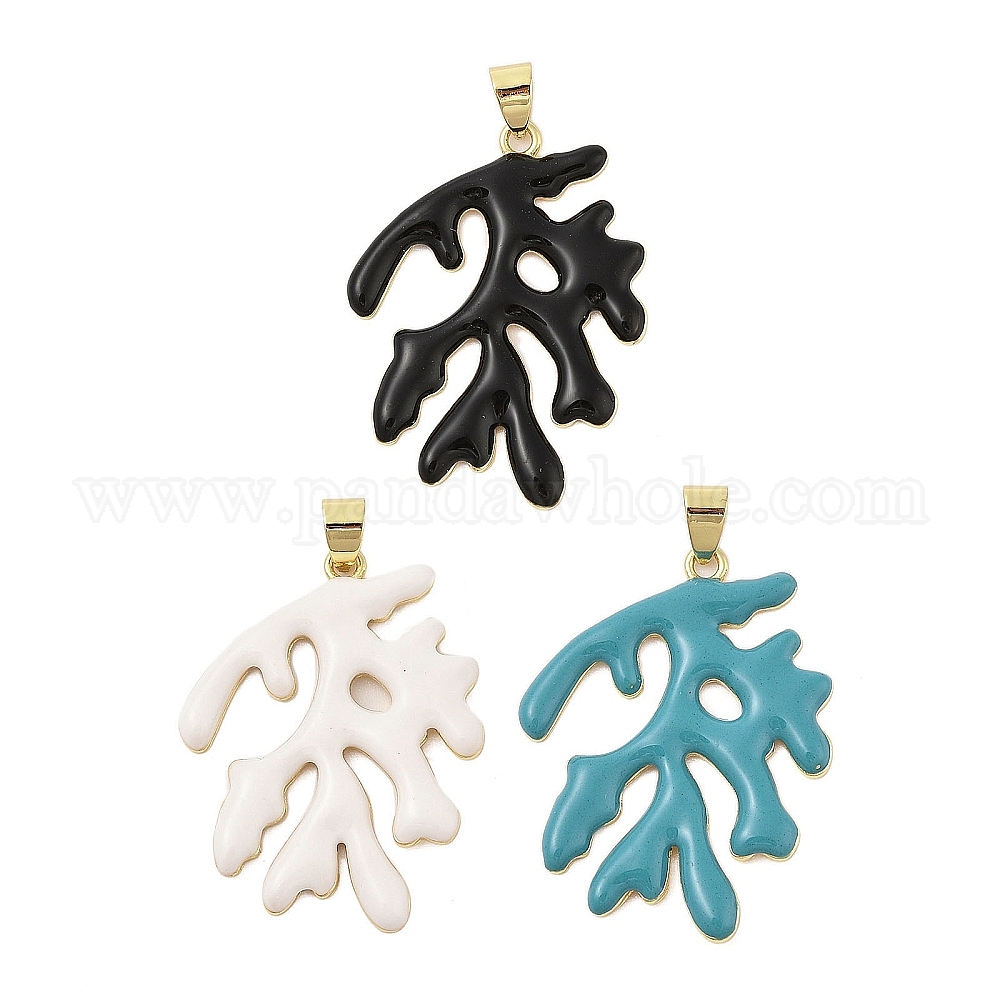 Подвески из латуни с эмалью в стойку, долговечный, без кадмия и без свинца, реальный 18 k позолоченный, форма коралла