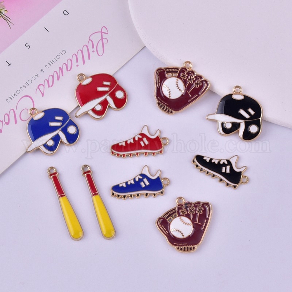 Подвески из эмали и сплава, брелок для бейсбольной штанги/перчатки/шлема/обуви, золотые (02XN35)