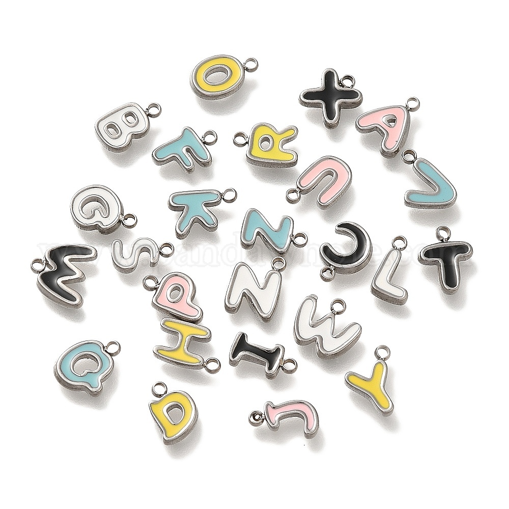 • Letter A~Z 304 прелести нержавеющей стали, с эмалью, буквенное очарование, цвет нержавеющей стали, Письмо ~ Z, 7~8.5x4.5~8x1 мм, отверстие : 1 мм, 26 шт / комплект