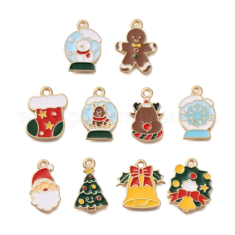 Новогодняя тема сплава эмали подвески, золотой свет, пряничный человечек, рождественская елка, снеговик и снежинка