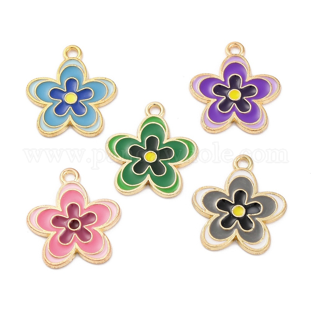 Подвески из эмали и сплава, цветочный шарм, золотой.
