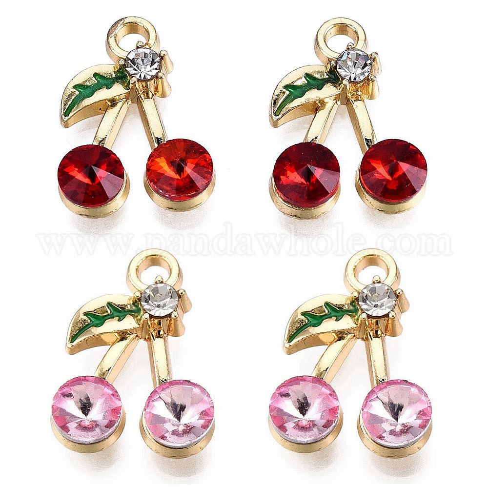 100шт 2 цветной сплав подвески со стразами, с эмалью, золотой свет, вишневое очарование
