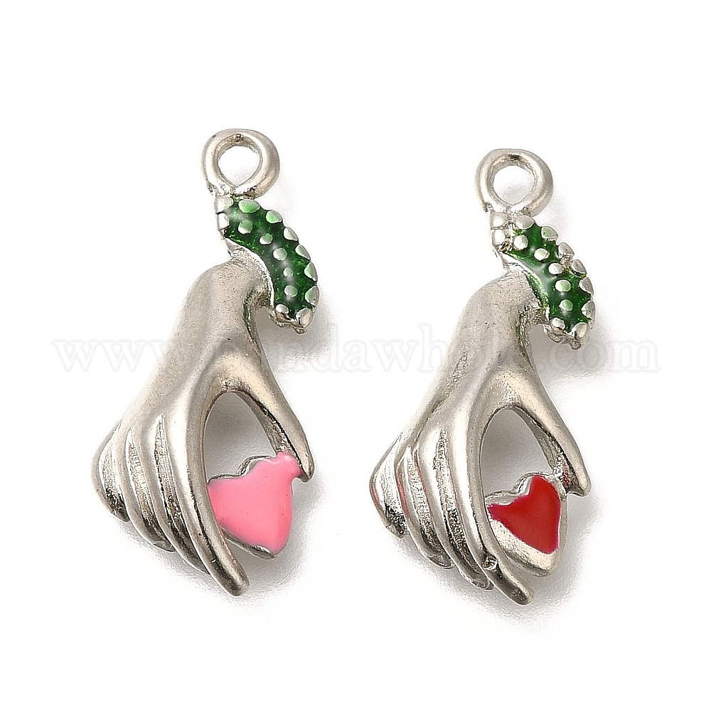Латунь эмаль подвески, платина, ладонь с подвеской в виде сердца