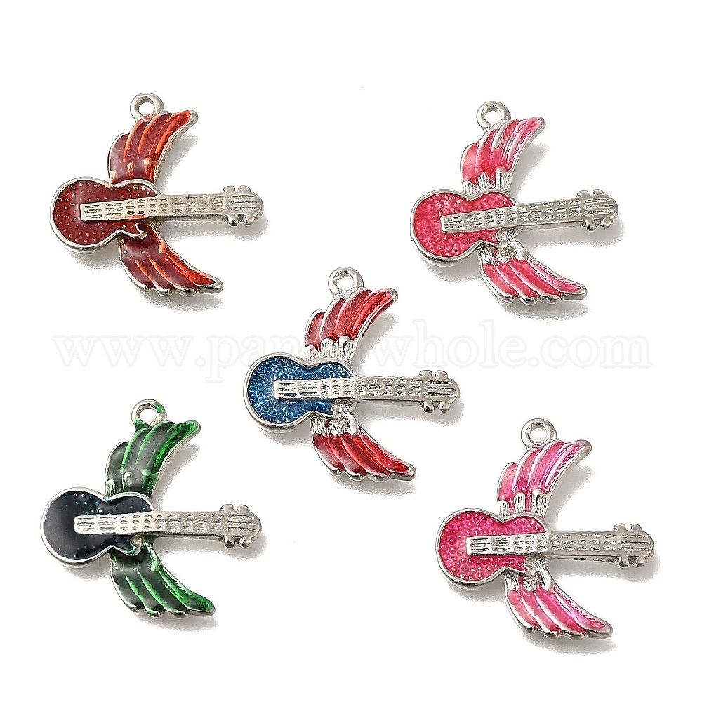 Латунь эмаль подвески, платина, гитара с подвеской в виде крыльев