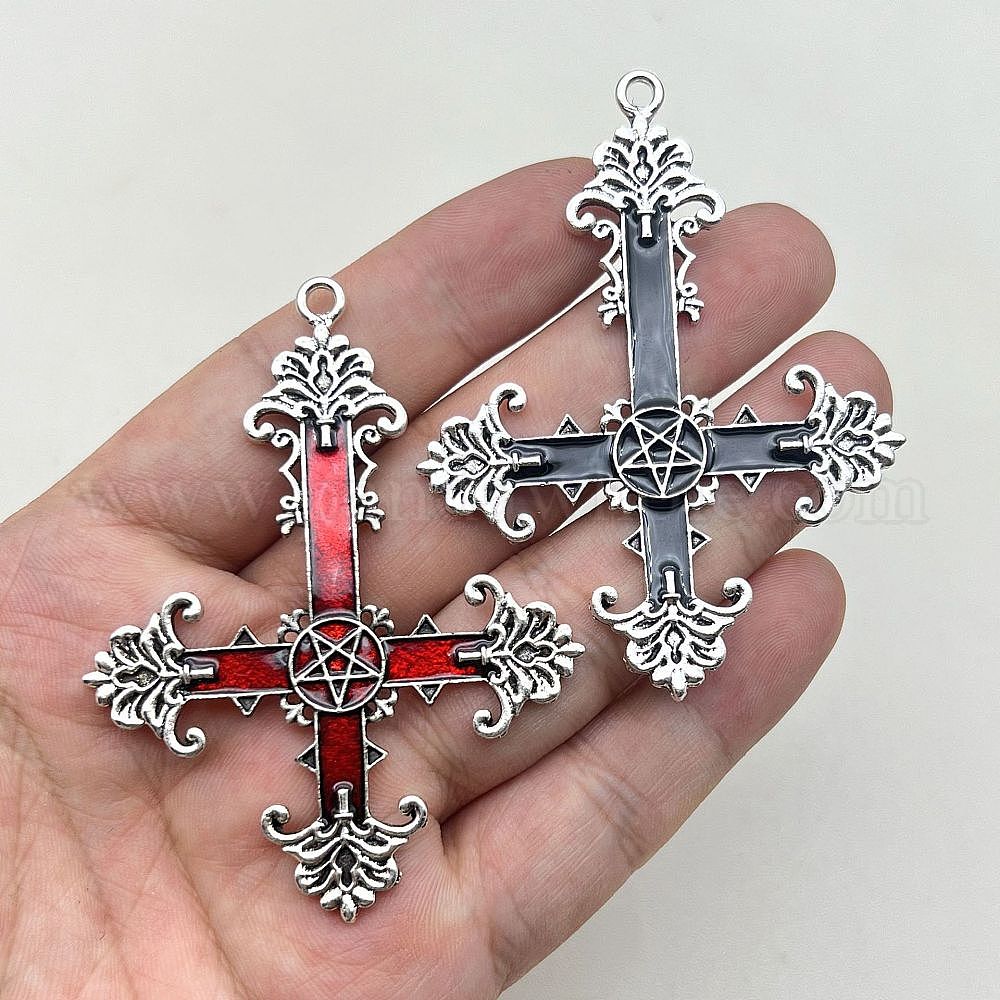 Эмали сплава большие кулоны, античное серебро, крест со звездой