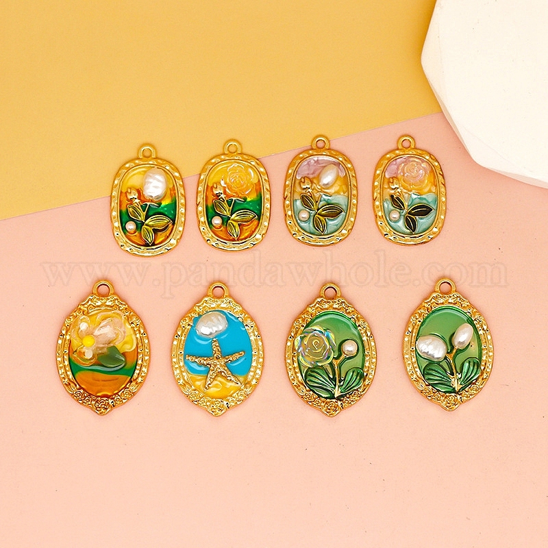 Подвески из эмали и сплава, овальные, золотые