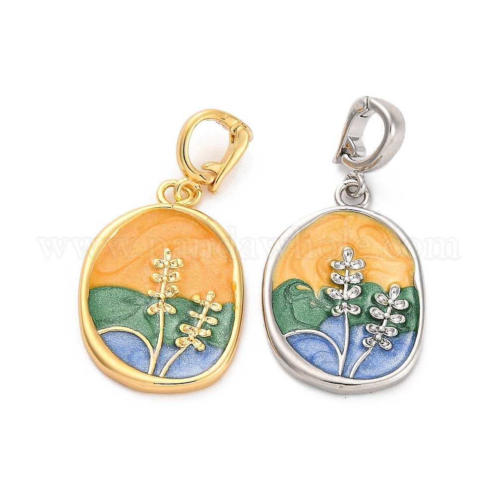 Латунь эмаль подвески, без кадмия, без никеля и без свинца, овал с цветочной подвеской