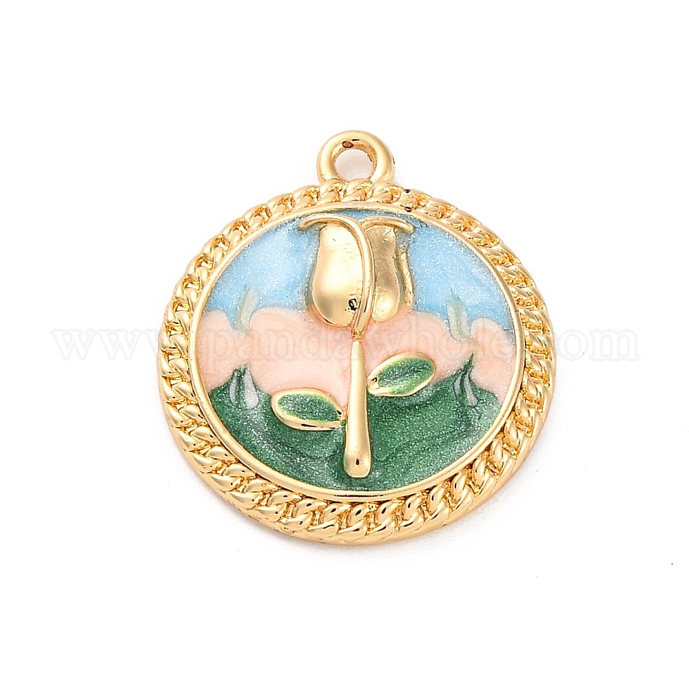 Латунь эмаль подвески, без кадмия, без никеля и без свинца, плоская круглая с подвеской в виде цветка
