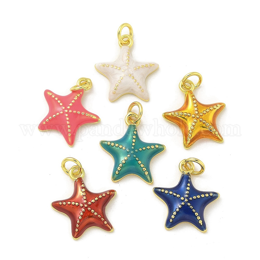 Латунь эмаль подвески, с целью перехода в кольце, без кадмия, без никеля и без свинца, реальный 18 k позолоченный, очарование морской звезды