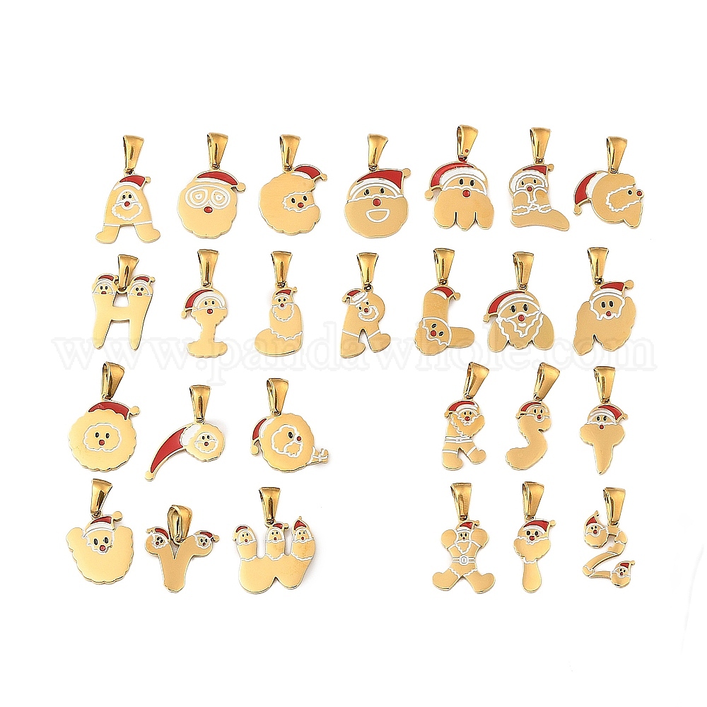 Новогодняя тема 304 подвески из нержавеющей стали, с эмалью, золотые, Санта-Клаус письмо талисман