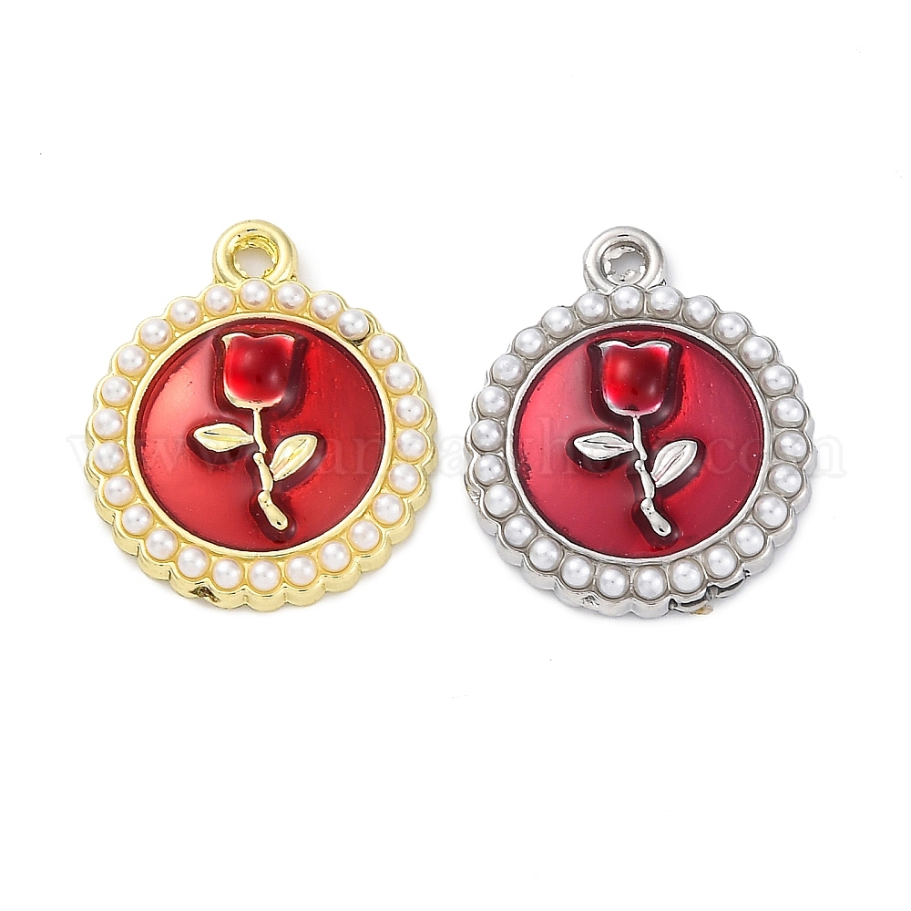 Стойки обшивки сплава эмали подвески, с абс пластмассовой имитационной жемчужиной, без кадмия, без никеля и без свинца, плоский круглый с подвеской в виде розы