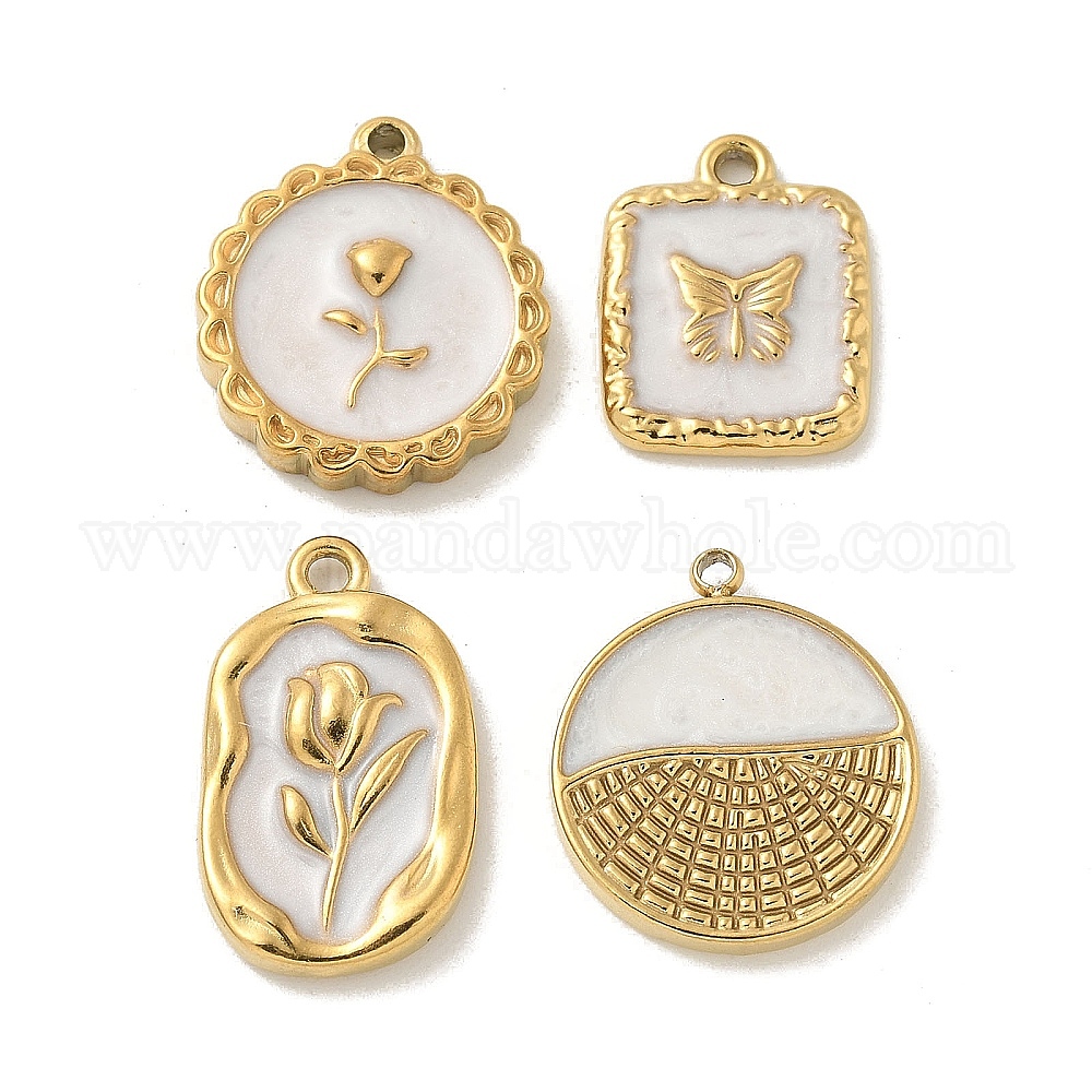 304 нержавеющей стальной эмали подвески, золотые, плоские круглые, овальные и квадратные подвески