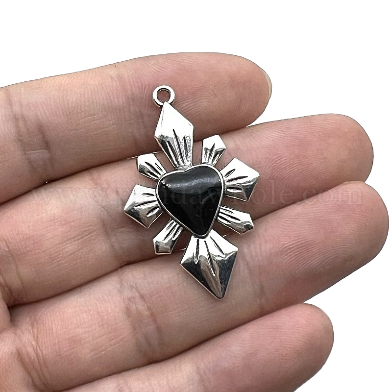 Тибетском стиле сплава эмали подвески, очарование крыла сердца, античное серебро