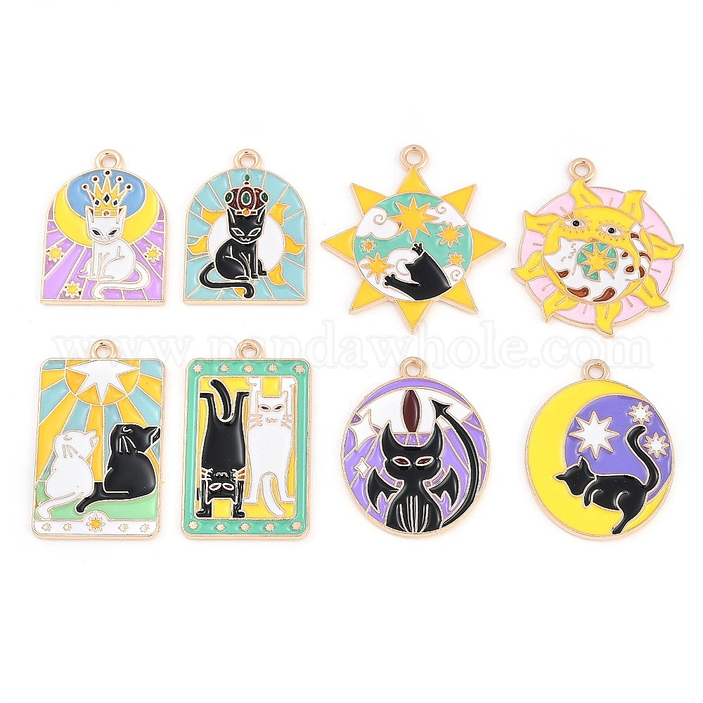 Подвески из сплава , с эмалью, Узор кошки, золотой свет