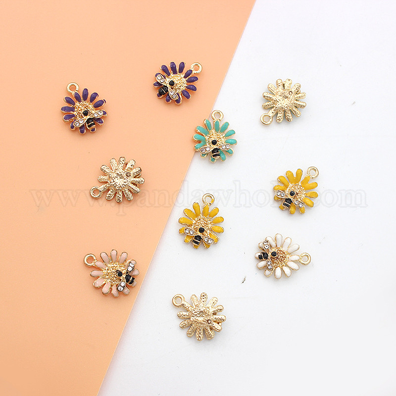 Кулоны, эмаль, сплав, золотистые , со стразами, цветок с пчелами талисман