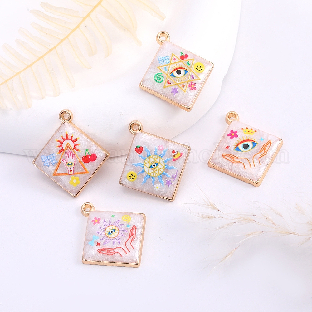 Подвески из эмали и сплава, золотые, ромб с солнцем/глазом/звездой Давида