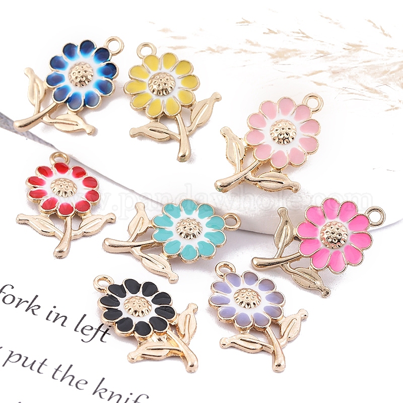 Подвески из эмали и сплава, цветочный шарм, золотые