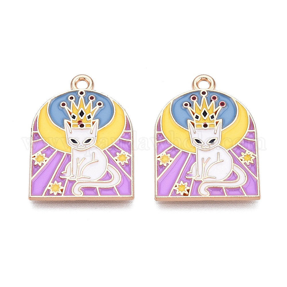 Подвески из сплава и эмали на тему карт Таро, без свинца и без кадмия, золотые, овальная солнечная арка прямоугольник с рисунком кошки