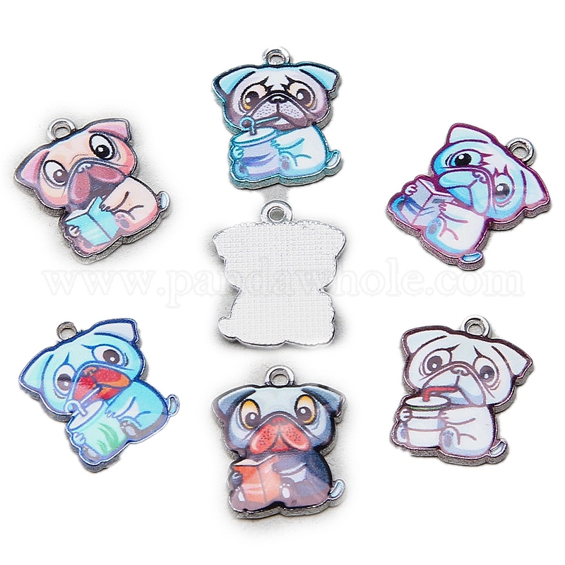 Подвески из эмали и сплава, милый мопс-талисман, платина (02ZAF6)