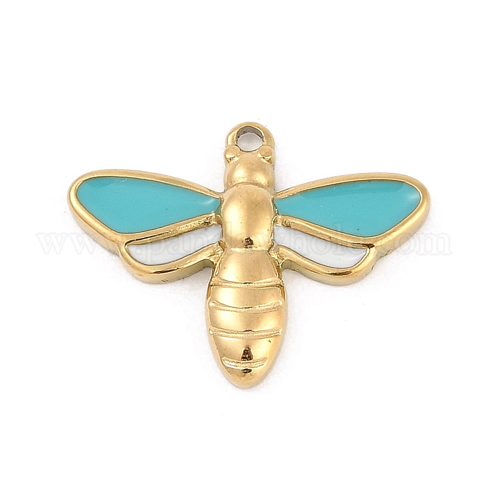 • Настоящее золото 18K 304 нержавеющей стальной эмали подвески, пчела прелести, ионное покрытие (ip), реальный 18 k позолоченный, 16x21x3 мм, отверстие : 1.4 мм