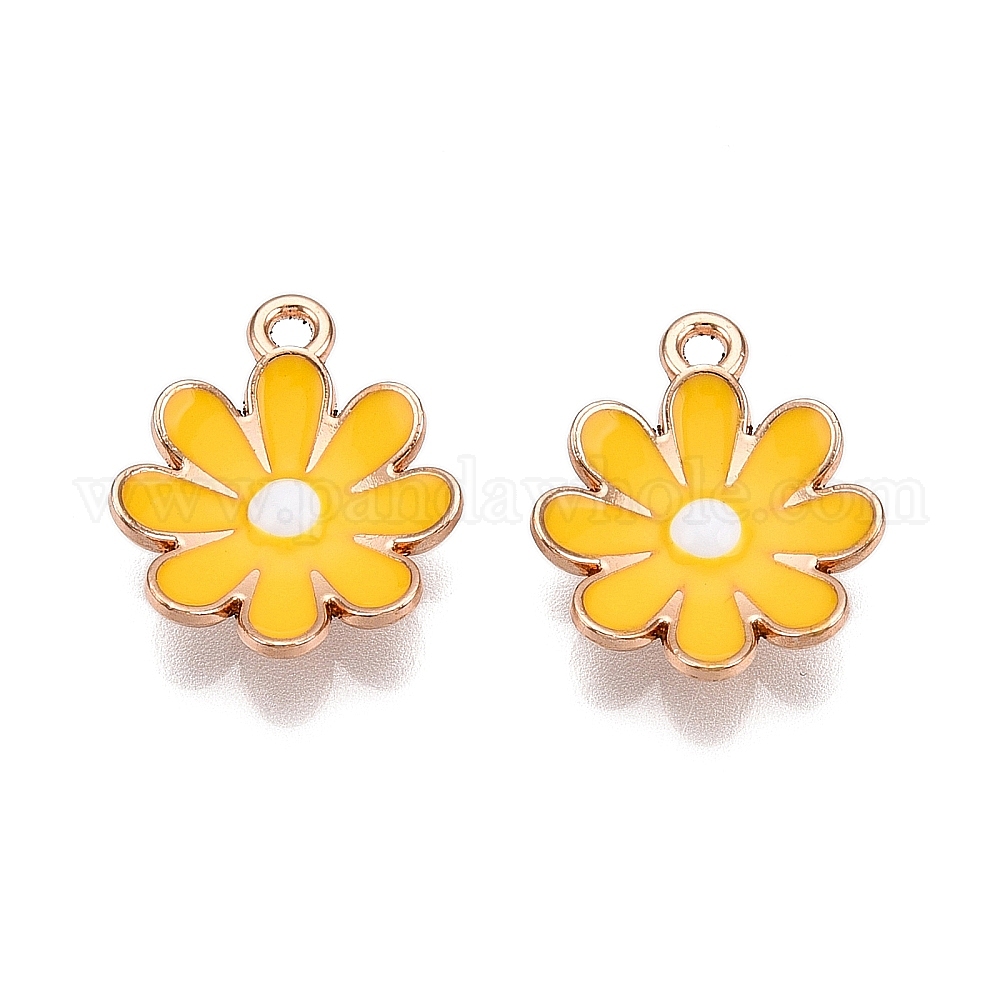 Подвески из эмали и сплава, без свинца и без кадмия, цветочный шарм, золотые