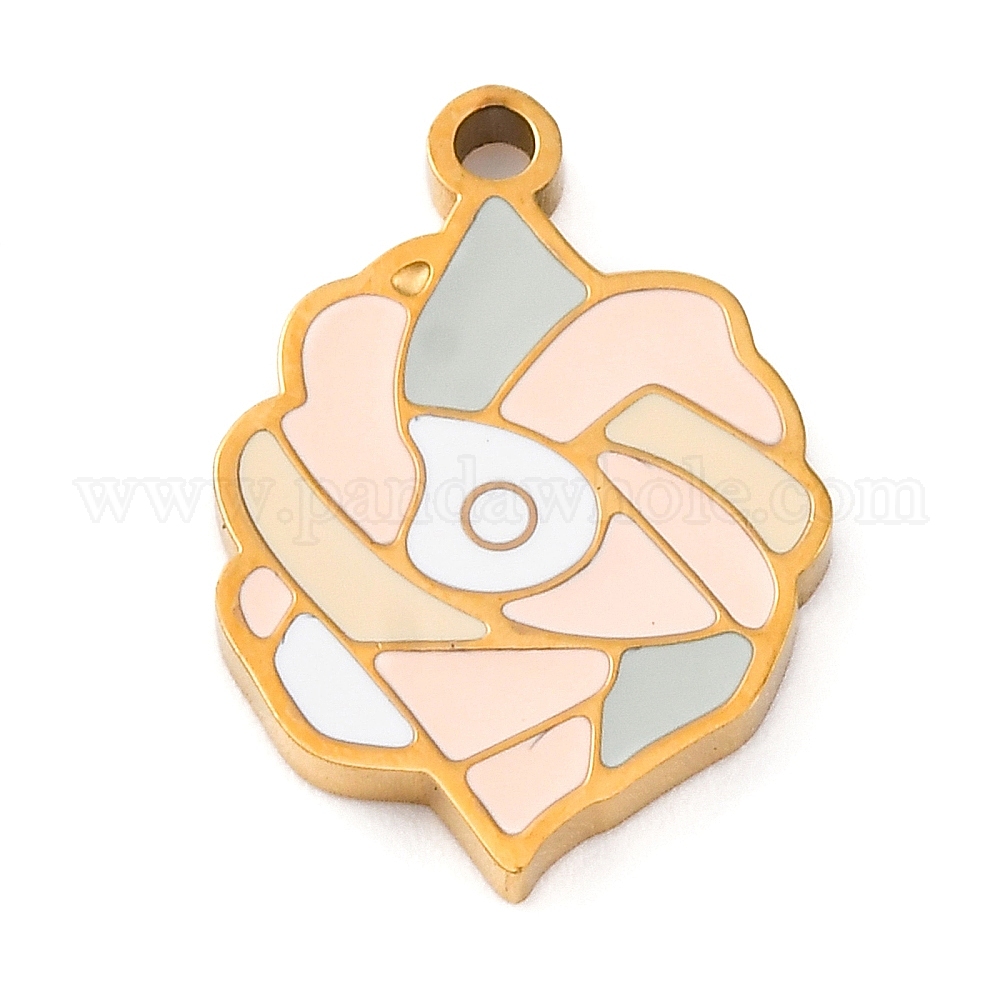 304 нержавеющей стальной эмали подвески, лазерная резка, цветочный шарм, золотые