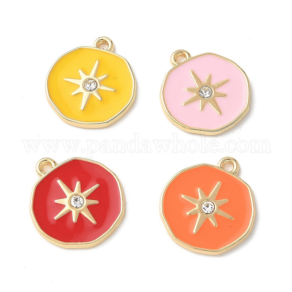 Подвески из эмали и сплава, со стразами, золотые, плоский круглый с шармом в виде звезды