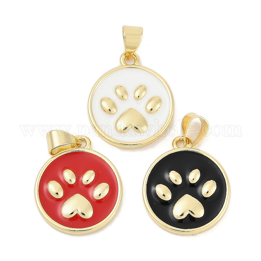 Латунь эмаль подвески, без кадмия и без свинца, долговечный, стойки покрытие, плоская круглая с подвеской в виде лапы, реальный 18 k позолоченный