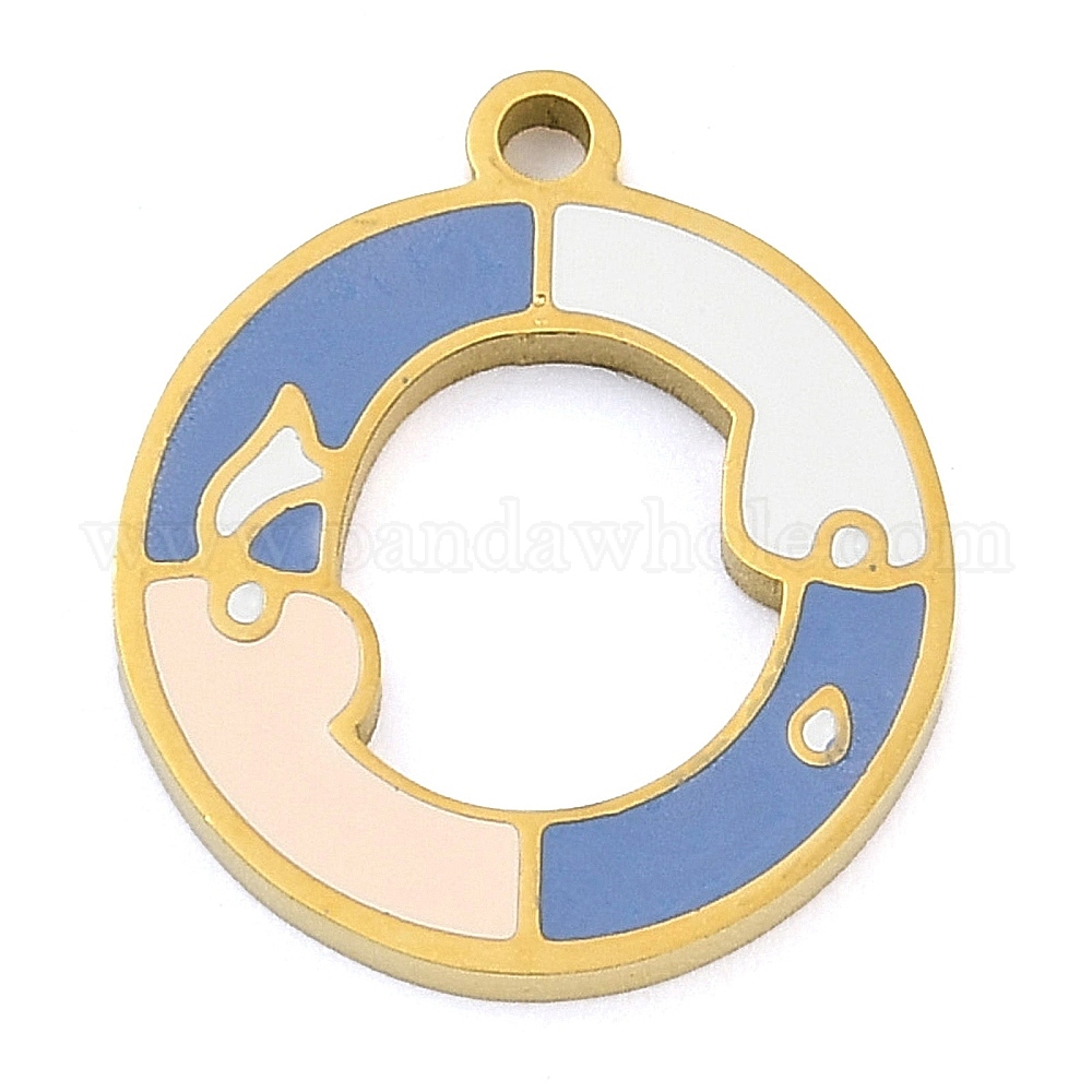 304 подвески из нержавеющей стали, с эмалью, круглое кольцо-шарм, золотые